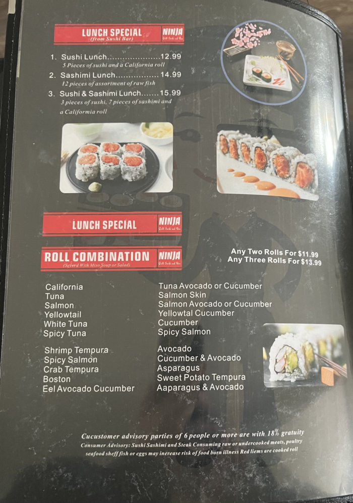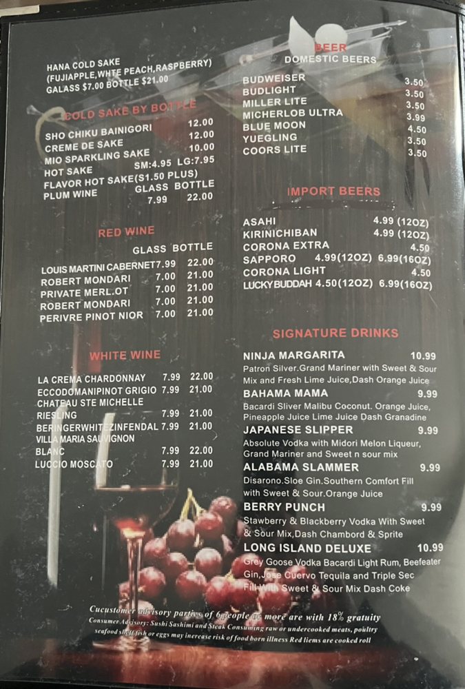 Ninja Japanese Steakhouse and Sushi is a casual Japanese sushi bar located in Athens, AL. Boasting a variety of amenities like takeout, delivery, and wheelchair accessibility, Ninja Japanese Steakhouse and Sushi aims to cater to a diverse range of customers. Customers have praised the friendly service and delicious food, with highlights including the chicken hibachi and specialty sushi rolls. While some have noted minor inconsistencies with certain dishes, overall, Ninja Japanese Steakhouse and Sushi remains a solid option for those craving Americanized Asian cuisine. With a welcoming atmosphere and attentive staff, this establishment is a go-to spot for a satisfying meal.